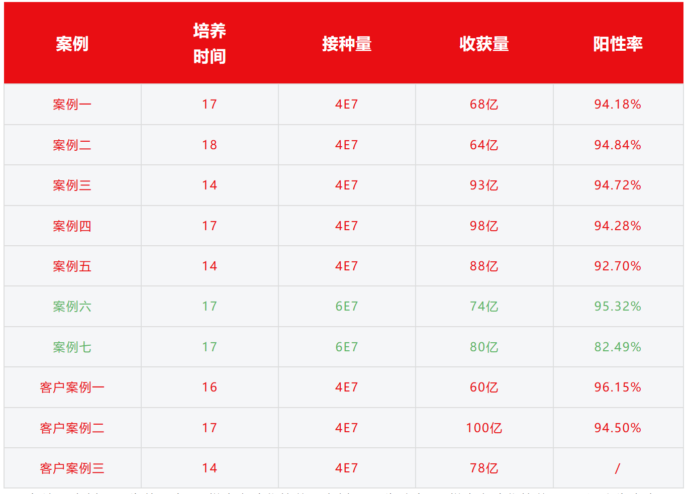 *手工培养收获93亿细胞数,阳性率97.61%。