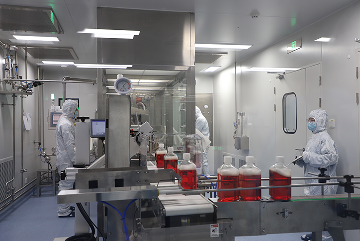地下一层为厂房核心中枢,用于实现全产线的恒温运转及培养基生产用水制备。 配备的250万大卡冷热量直燃机,可在生产全时段维持20~24℃稳定,保障生产质量。生产用水配备柱体和管束均为国内一线品牌无缝钢管,保障精确和稳定的输出温度。一层区域是仓储空间,配备先进稳定的温控系统和出风系统,实时监测并调节厂房内温度、湿度和空气流通,保障产品一致性和可靠性。二、三层区域为细胞和分子产品核心生产区,配套3条瓶装培养基灌装线,1条袋装培养基灌装线,1条微量添加剂灌装线,1条细胞培养用耗材生产线,1条冻干添加剂车间,2条分子产线。全产线无菌灌装背景达到B+A级静动态洁净度,专线专用,严格禁止交叉生产,符合GMP级质量管理体系的内部审查要求,能够完美支持更多客户在中国与美国同时进行药物申报与药物生产的硬件要求。